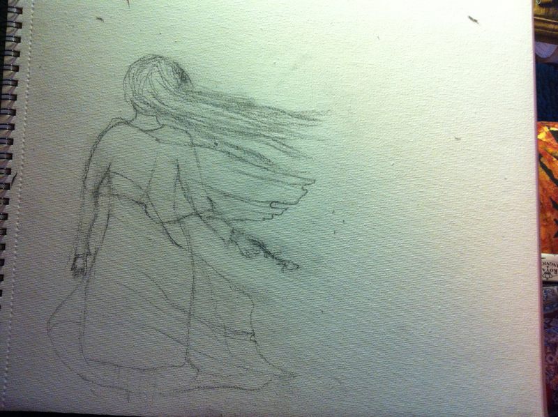 I initially did this sketch of myself in my sketchpad while waiting for the background to harden.