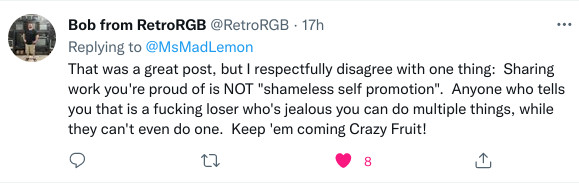 Throughout the years of being a content creator. I have been accused of “self promotion” a couple of times. Though once recently which amused me considering the context and accuser. Anyway, I chose to let it affect me positively. It made me think inward a little and it provoked an interesting discussion with my other half.
