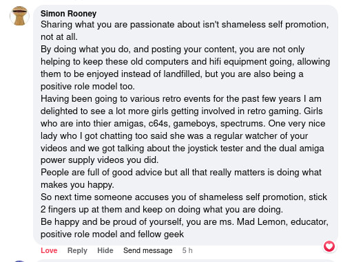 I did a lot with my projects back in the day, despite someone telling me: “Madeeha! You don’t look good shopping for electrical components” as I was shopping in a Tandy Store for LEDs, E10 torch bulbs, resistors and pp3 battery clips at the tender age of eight. (Yeah the “weird” kid). The only one who gave any sort of support was my oldest brother, he knew what I liked and let me be. He’s the one who got the Amiga 500 and introduced me to Pac-Mania.